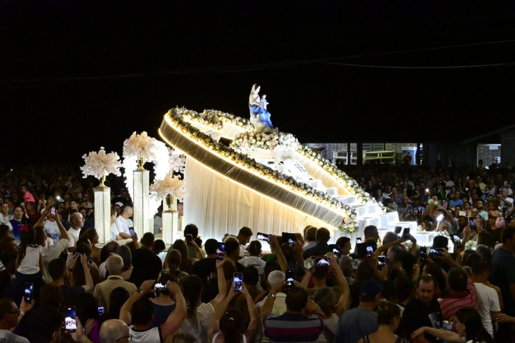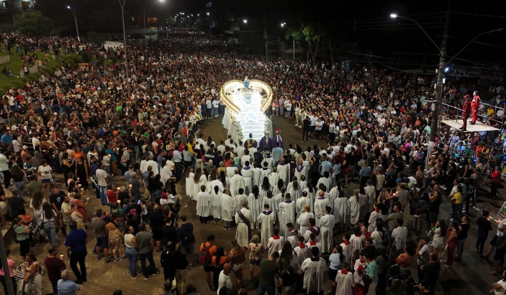 No sábado à noite, a Santa Missa foi presidida por Dom Juarez Albino Destro, bispo auxiliar de Porto Alegre. Na ocasião, ocorreu o encerramento da novena, seguido da coroação de Nossa Senhora e da tradicional procissão luminosa com o carro-andor, reunindo fiéis em um momento de profunda devoção.