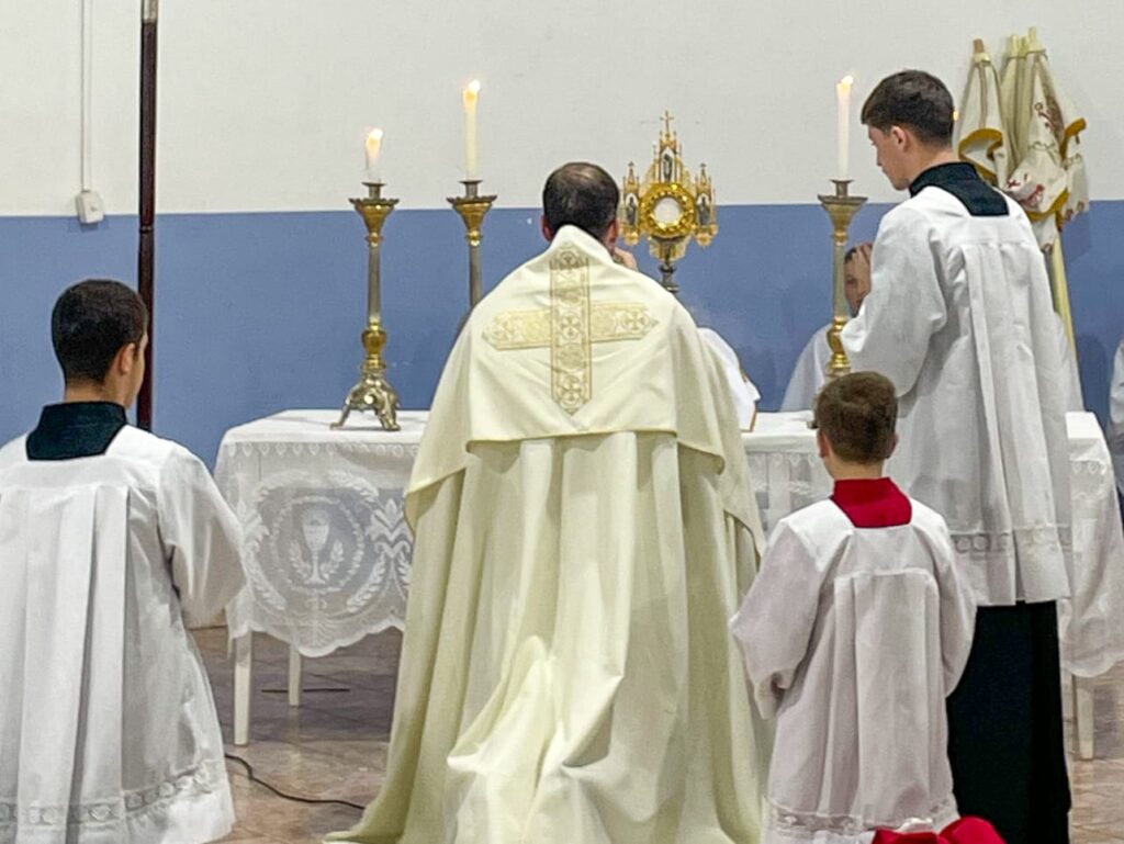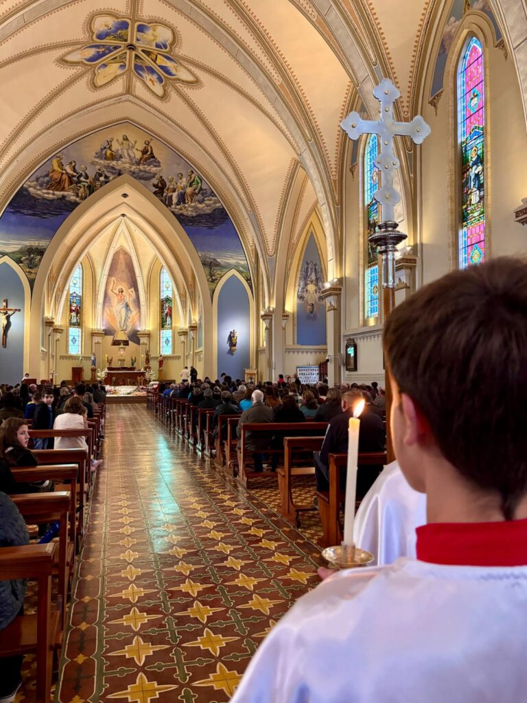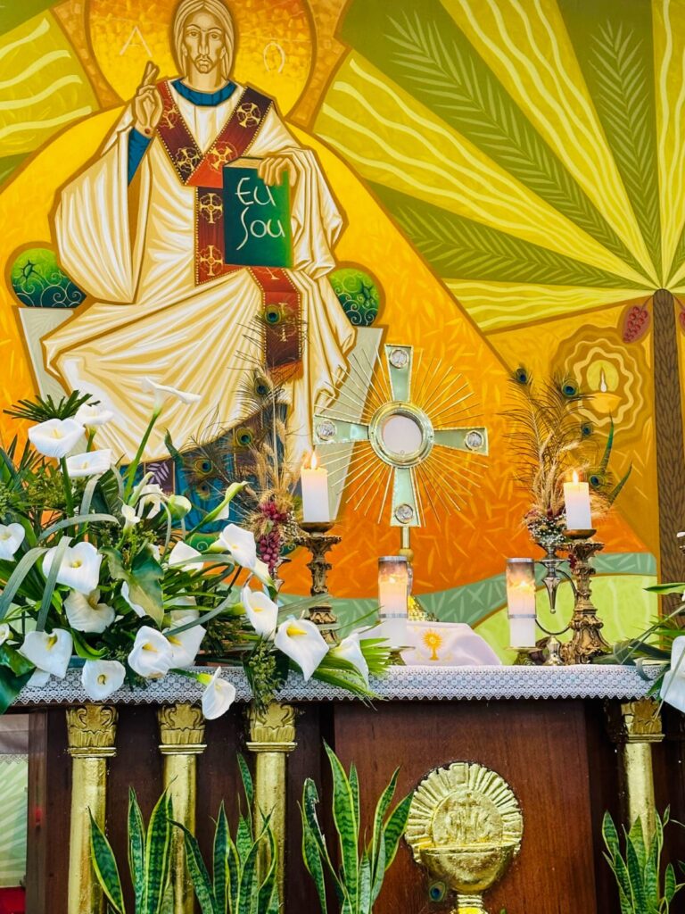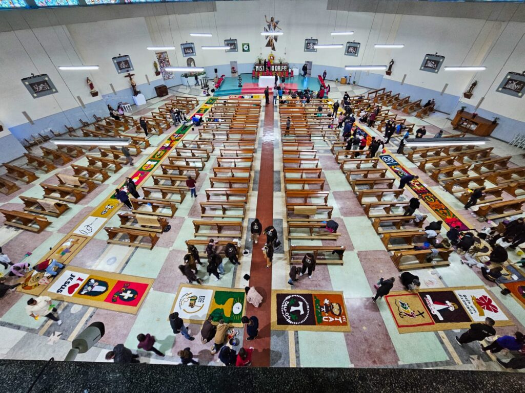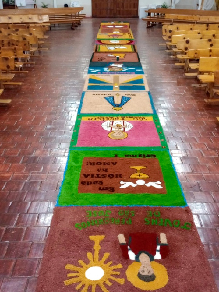 Em Lagoa Vermelha, a Paróquia Santo Antônio celebrou Corpus Christi com grande empenho. A comunidade começou a preparar os tapetes dias antes, com dedicação e criatividade. O tema deste ano, “Jubileu 2025 – Peregrinos da Esperança”, orientou a confecção, trazendo símbolos do caminho de fé e da presença viva da Eucaristia. Além disso, houve preocupação ambiental: muitos dos materiais foram reciclados, em sintonia com a Campanha da Fraternidade – Fraternidade e Ecologia Integral. Apesar da chuva ter impedido a procissão externa, a beleza e força espiritual permaneceram intactas, com o Santíssimo conduzido pelo frei Sérgio Dal Moro.