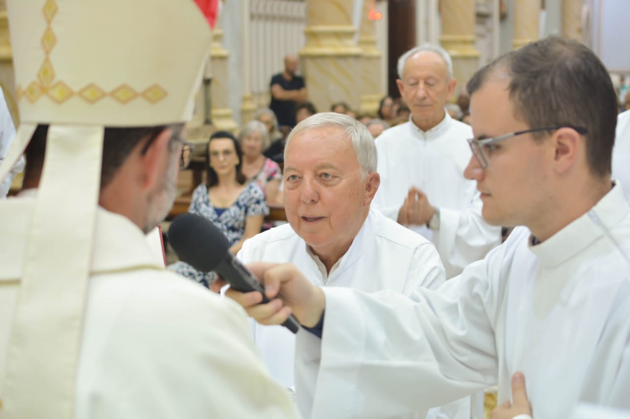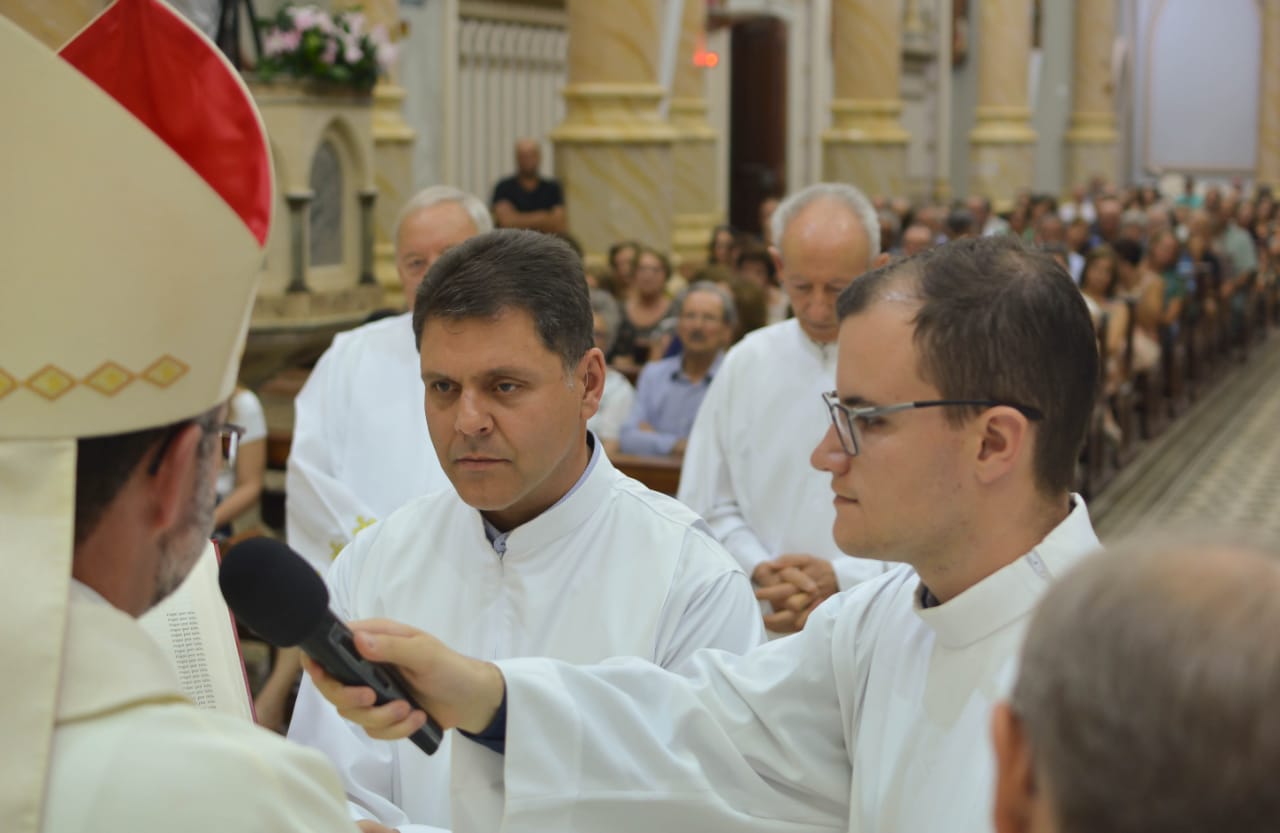Ao final da celebração, Nelson Francisco Benvenutti, em nome dos neo-diáconos, agradeceu a todos que colaboraram no processo de formação e discernimento vocacional.
