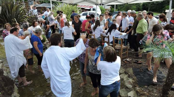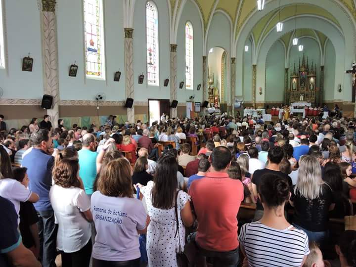 O domingo da Romaria ficou marcado por três momentos fortes: a missa das 10h, presidida pelo Pe. Edson Priamo do Santuário de Ibiaçá, a renovação individual do batismo na réplica do Rio Jordão, e o encerramento com a renovação das promessas do batismo e bênção do Santíssimo Sacramento. Nos três momentos houve enorme participação do povo.