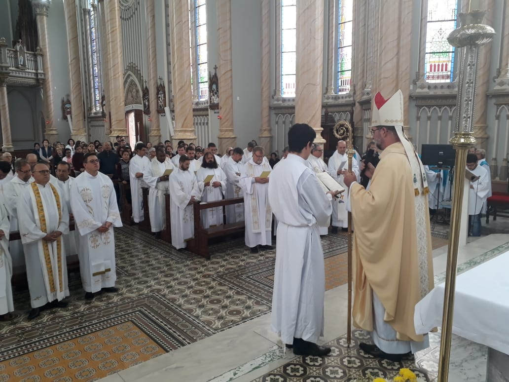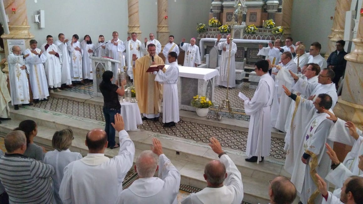 Na manhã da Quinta-feira Santa, 18 de abril de 2019, celebrou-se na Catedral Nossa Senhora da Oliveira/Vacaria a Missa do Crisma, com a renovação das promessas sacerdotais, bênção dos óleos dos enfermos e dos catecúmenos e a consagração do óleo do Crisma.