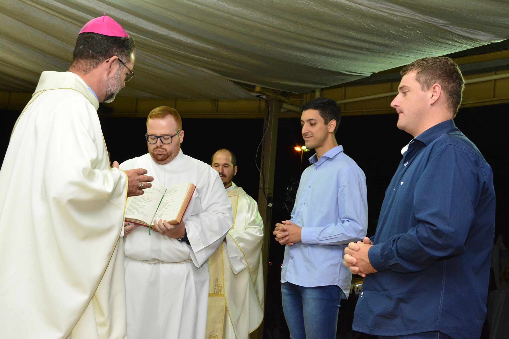 O último rito foi o recebimento do Ministério de Acólito dos dois seminaristas do terceiro ano da etapa da Configuração/Teologia: Edimar Scopel, natural da paróquia São Luiz Rei, de Ipê, e Marlon de Aguiar, natural da paróquia São João Batista, de Sananduva. A partir do Ministério de Acólito os seminaristas passam auxiliar o diácono e o sacerdote nas ações litúrgicas, sobretudo na celebração da santa Missa. Como símbolo desta etapa eles receberam das mãos do Bispo a patena com o pão.